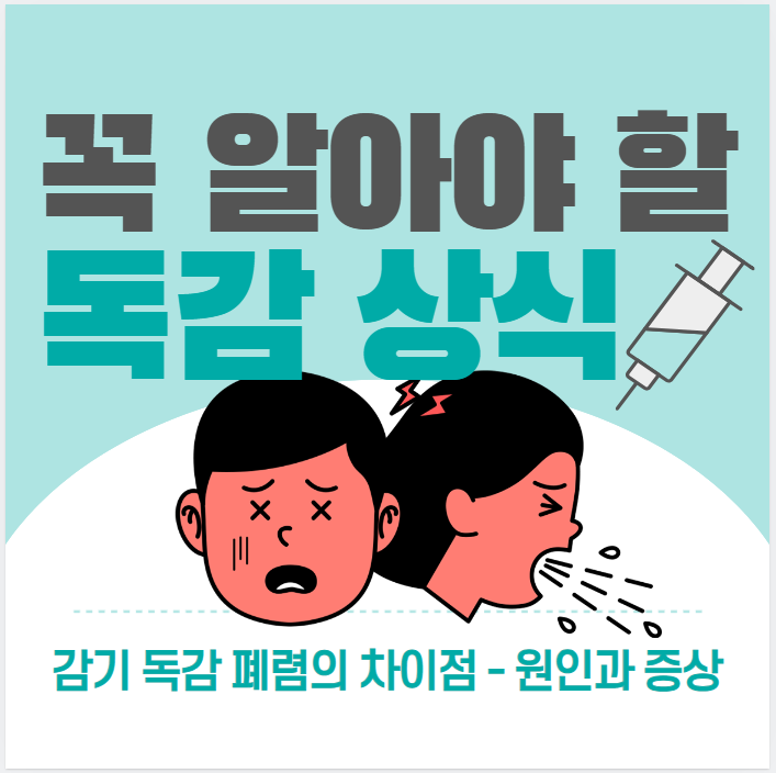 | 차이점 | 서서히 증상이 나타나 미열로 그칠때가 많음 | 갑자기 증상이 악화하여 39 ℃ 이상 고열발생됨 A형독감 B형독감 C형독감 |